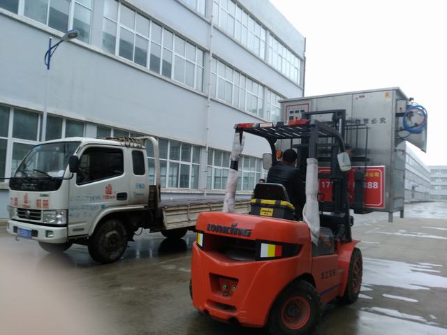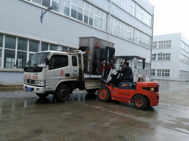 風雨無阻,發(fā)往山東棗莊的自動脫毛機裝車實拍圖片