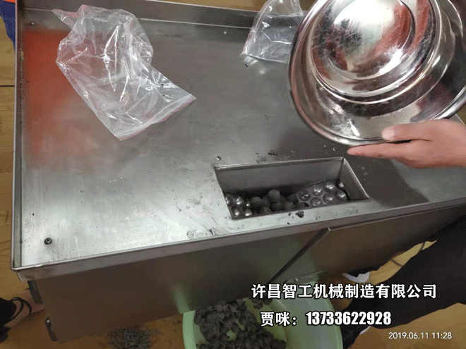 6月11日,商丘客戶姜老板自帶黑芝麻湯圓陷到許昌智工試機(jī)元宵制餡機(jī)。以下是試機(jī)圖片: